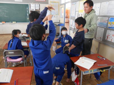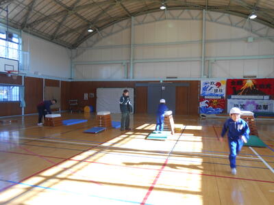 1.2年生は、合同で体育を行っていました。縄跳びの練習で、1年生は前跳びやあや跳びを中心に、2年生は交差跳びや二重跳びまで挑戦していました。冬の縄跳びは体力つくりには絶好です。冬休みなどもチャレンジできるといいですね。