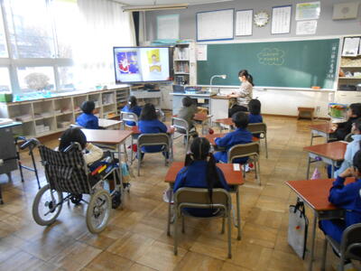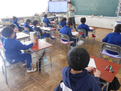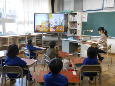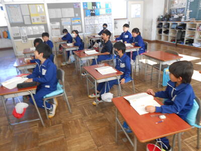 朝の学習の時間は、教師による読み聞かせがありました。この時期に合わせた干支の話や冬ならではの物語などでした。子供たちは熱心に耳をかたむけて聞いていました。