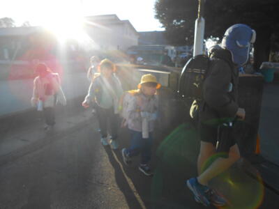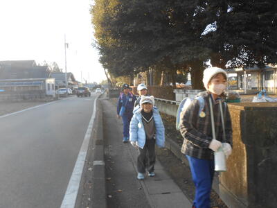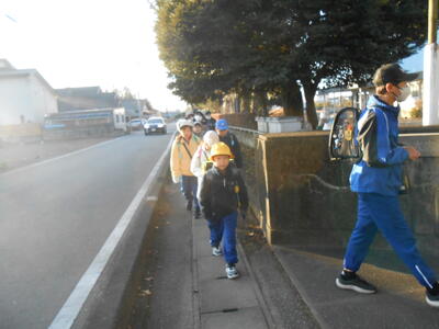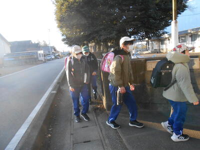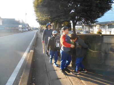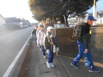 今朝も霜が真っ白でした。登校班では、班長と副班長さんが、低学年の児童に合わせながら歩き、安全に連れてきてくれています。「ありがとう!」