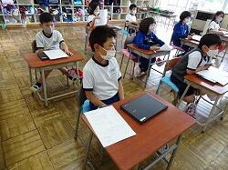 火曜日にタブレットを使う前の事前の注意事項と、個人のID、パスワードの確認を行いました。児童は自分のパスワードを自分で決めて管理することになります。
