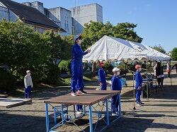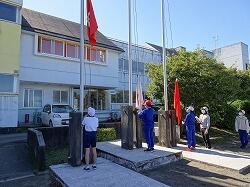 校歌は、最近学校で歌うことが少なかったので、みんなが揃っているところで歌ってよいのかわからずとまどっていましたが、「外で、しかも2m以上離れているので、元気に歌ってください」というとみんな元気に歌い始めました。