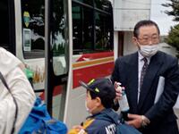 1・2年生は大型バスなので、下籠谷公民館の駐車場をお借りしています。