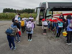 ほぼ予定通り行程は進み、時間通りに帰ってこられました。少しバスに酔ってしまった児童もいましたが、全員無事に帰ってきました。到着式を行って、迎えてくれた人にお礼をいって解散しました。