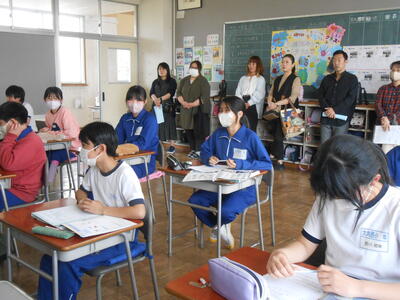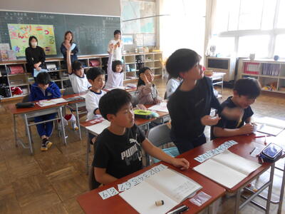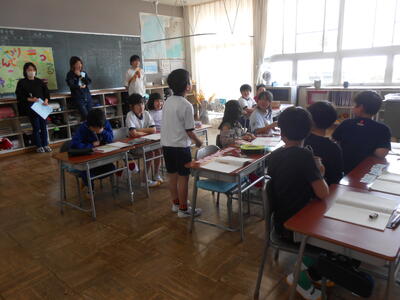 2年生は、音楽の時間で、歌の発表をしていました。「ゆうやけ こやけ」を音程に気を付けて、少人数でもしっかりと歌っていました。4年生は、国語の授業で、「言葉の意味と使い方」の学習でした。複数の意味をもつ言葉でクイズをつくっていました。