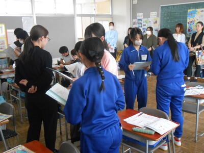 今日は、社会科の授業で租税教室がありました。市内の税理士事務所からお越しいただき、税についての講和をしていただきました。世界の消費税について教えていただいたり、身の回りの多くのものは税金でつくられたりすることを確認しました。最後に1億円の札束を持ってみて、その重さを実感しました。
