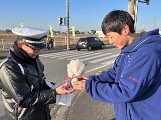 本校の東門(体育館北側)にて、生徒たちの登校を見守っていただいているボランティアさんに感謝の気持ちを込めてお花を贈りました。関係機関から委託された交通指導員さんではなく、近くにお住まいの方です。朝から冷たい雨が降っていましたが、そこだけあったかい空気が感じられました。いつも、本当にありがとうございます。