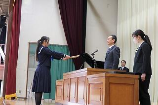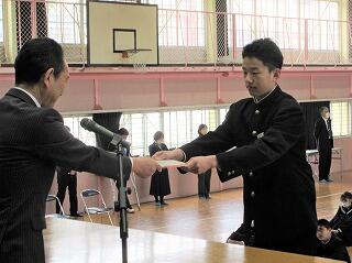 本日、卒業式の予行後に3年生への表彰を行いました。