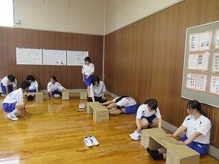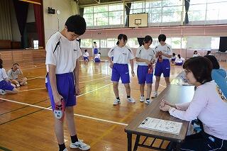 自己の体力・運動能力の現状を確かめ、生涯にわたって健康的な生活を送るための態度を培うために新体力テストを行いました。各学級の保健体育係を中心に、諸準備や当日の計測、後片付けまで進んで取り組んでいました。