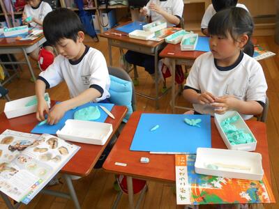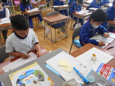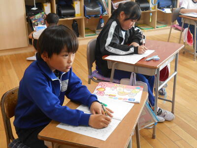 2年生は昨日の続きで、生活科の町探検の新聞作りをしていました。いよいよ明日が発表会です。がんばって欲しいと思います。