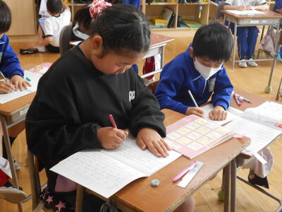 子どもたちは黙々と清書に取り組んでいて、たくさんの素晴らしい作品が完成したことと思います。