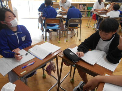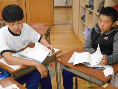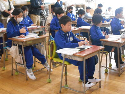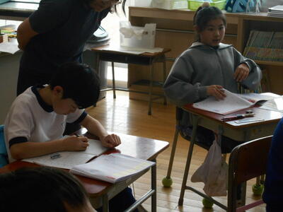 今日は4年1組の国語と4年2組の算数の授業、6年生の書写の授業の様子をお伝えしたいと思います。