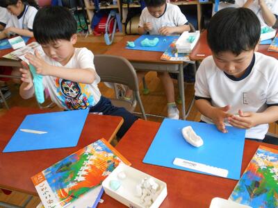4年2組の図工は、版画の制作の終盤戦に入りました。最後まで集中して、素敵な作品を完成させてくださいね。