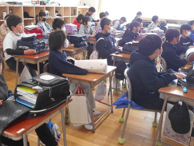 今日から中学生のマイチャレンジが始まりました。山前中から3名の生徒が来校し、作業をしたり先生体験をしたりして過ごしました。