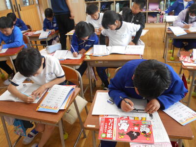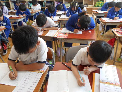 子どもたちは黙々と清書に取り組んでいて、たくさんの素晴らしい作品が完成したことと思います。