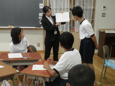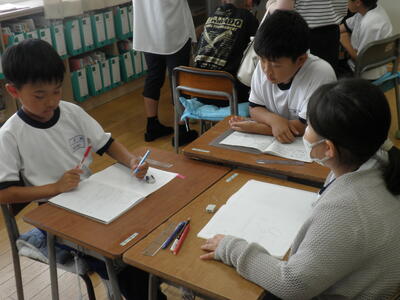 大学生の授業とは思えないほどの落ち着いた雰囲気の中、子どもたちは真剣な態度で授業に取り組んでいました。