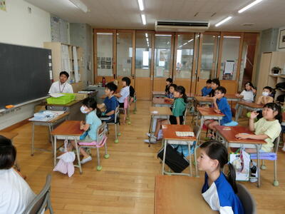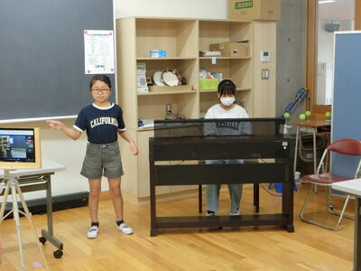 リモートで音楽を流すと、多少の時間差があり、子どもたちは歌いにくかったと思いますが、どの学級からも元気な歌声が聞こえていました。