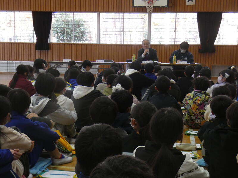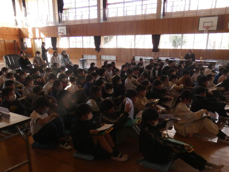 夏の暑い時期に一度来校され、6年生によるワークショップを行いましたが、その6年生達がオープニングに出演しての講演です。
