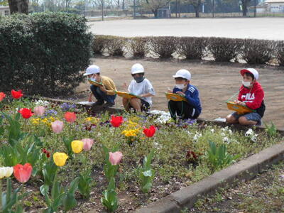 桜やてんとう虫、菜の花、たんぽぽなど、たくさんの植物や生き物を見つけることができ、子どもたちは大喜びでした。
