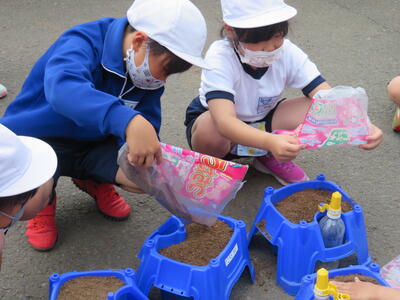 生活科の学習で、野菜の苗植えや種まきをしました。