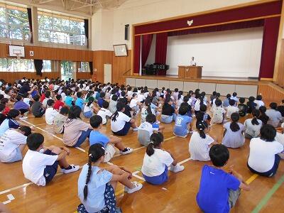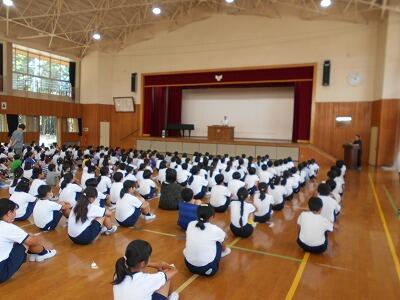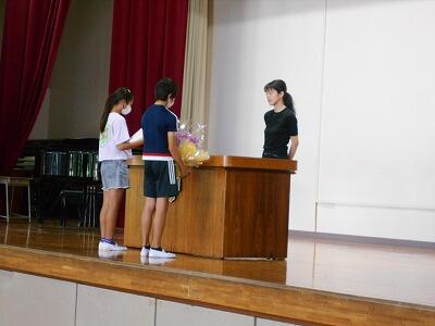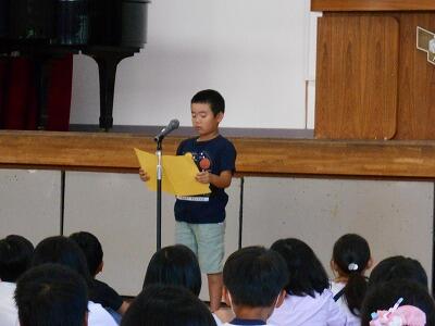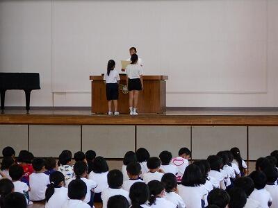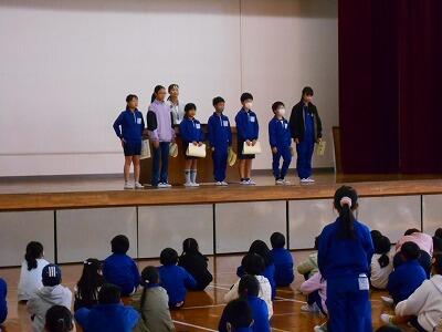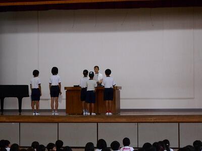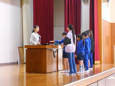 読書感想文や絵画・書道等、各種分野で入賞した児童への表彰がありました。