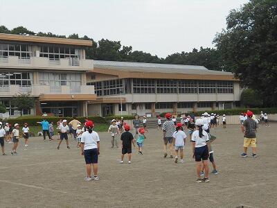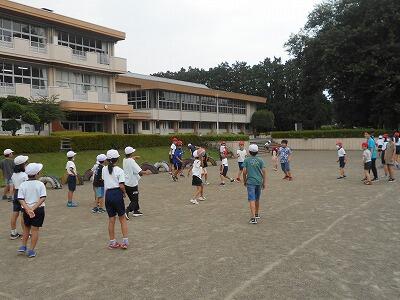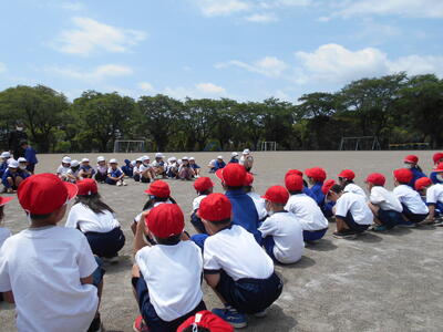 休み時間中に、突然の火災発生の放送。校庭や教室など、今いる場所から各自が考え、避難しました。