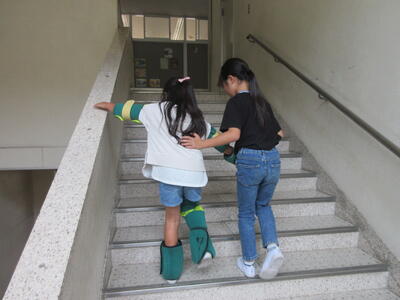 自分たちで考えた命令通りに動かせるのか、自分が実際にロボットになって進んでみます。