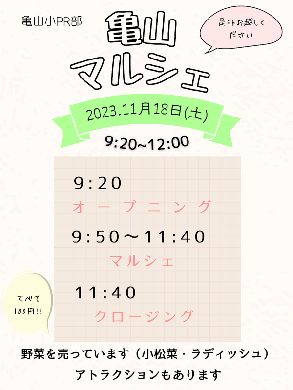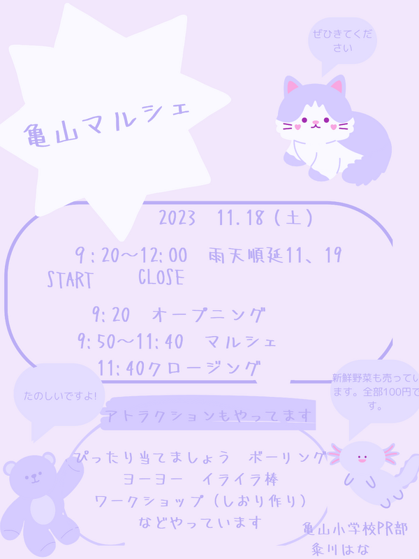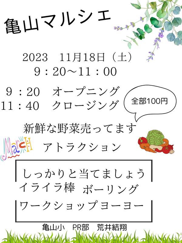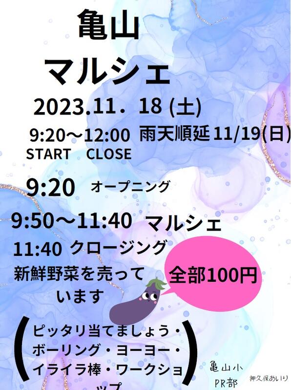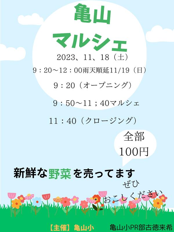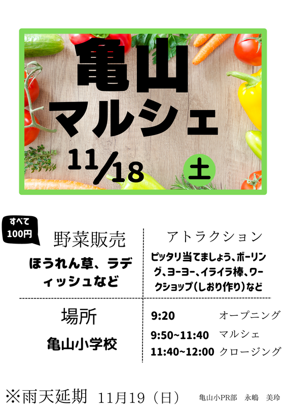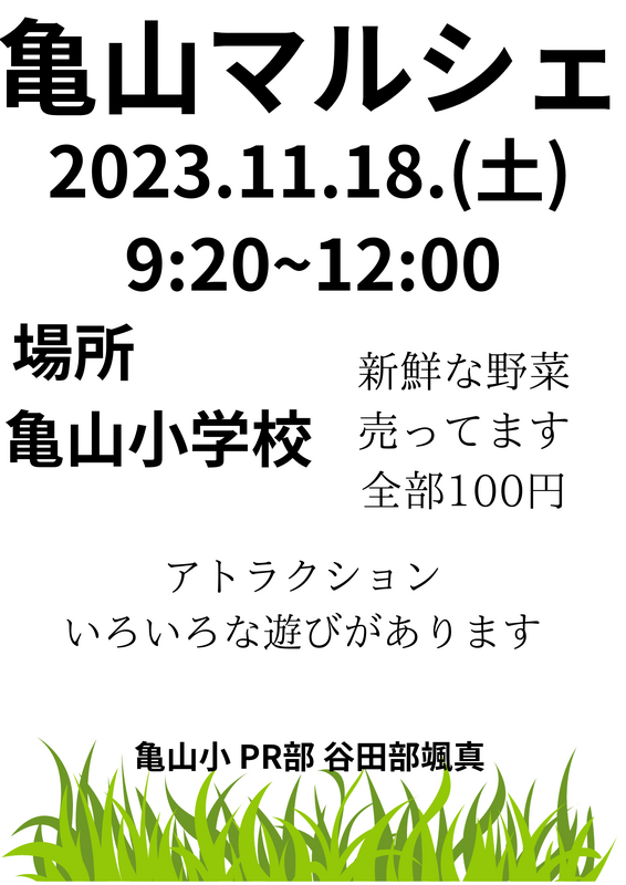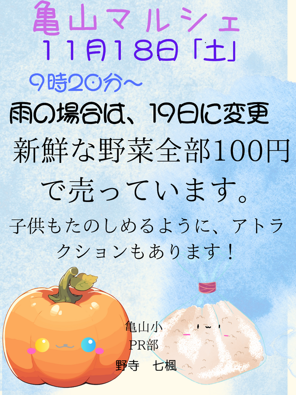 児童が18日(土)に行われる亀山マルシェのポスターを作成しました。