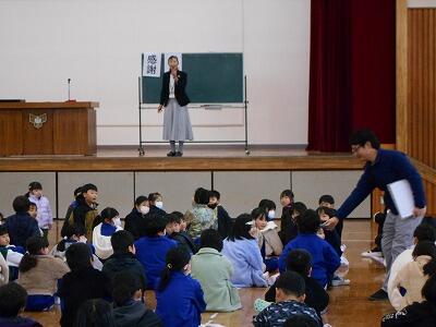 2月16日木曜日には、亀山地区の区長さんをお招きし、『亀山小ができるまで』をテーマにお話しいただきました。