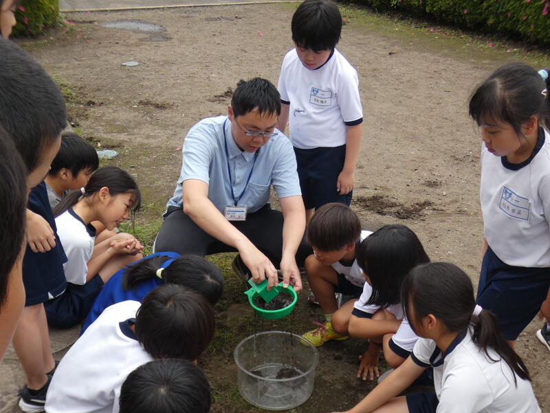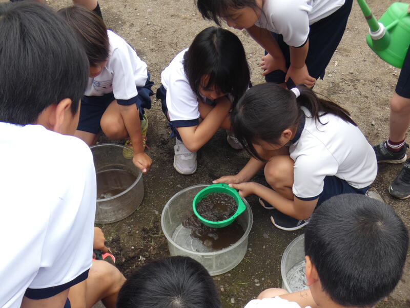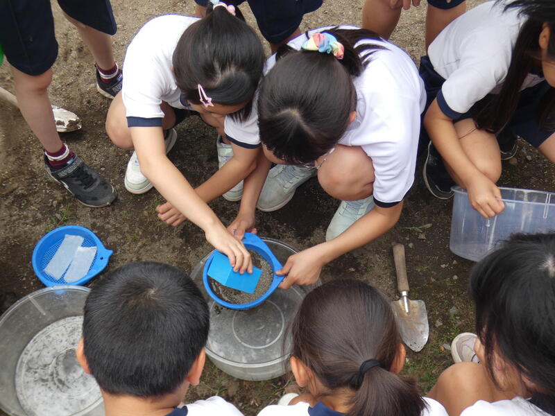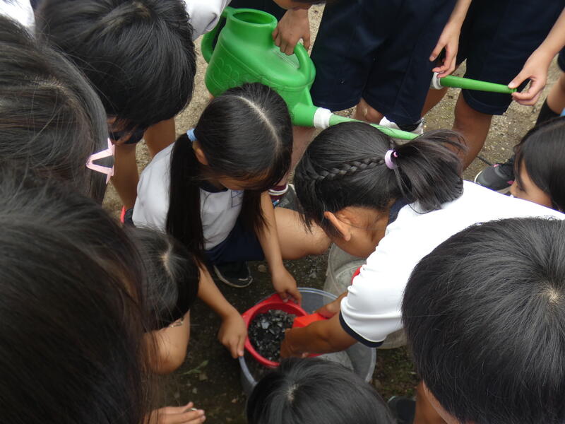 土・砂・砂利、水を一番通しやすいのは何かを実験しました。