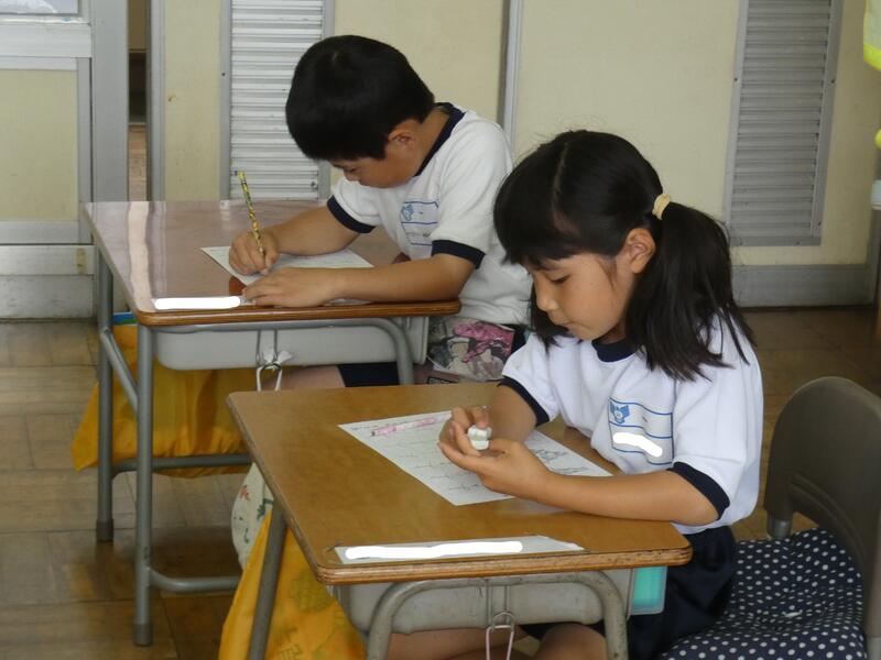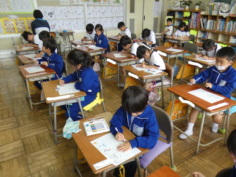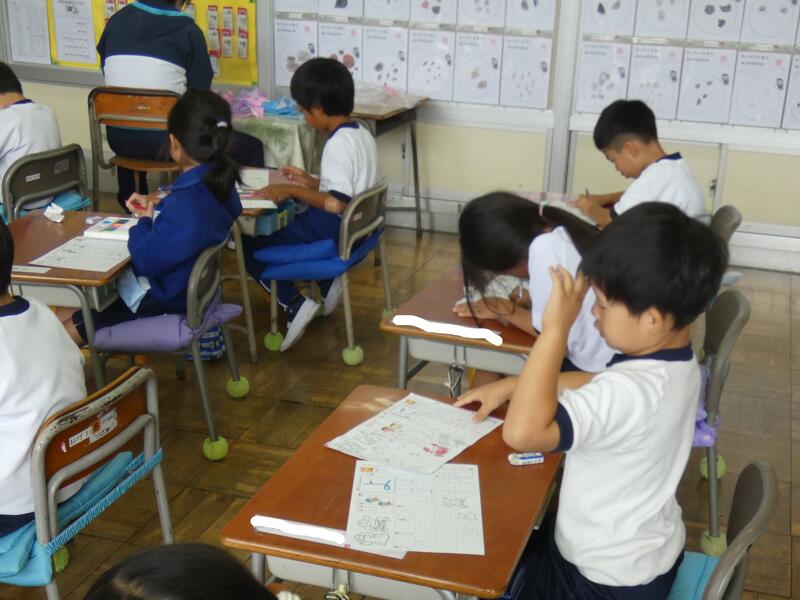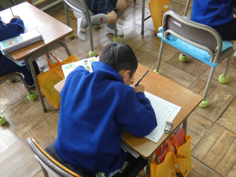 プリントのお手本を丁寧になぞって、しっかりと練習をしています。