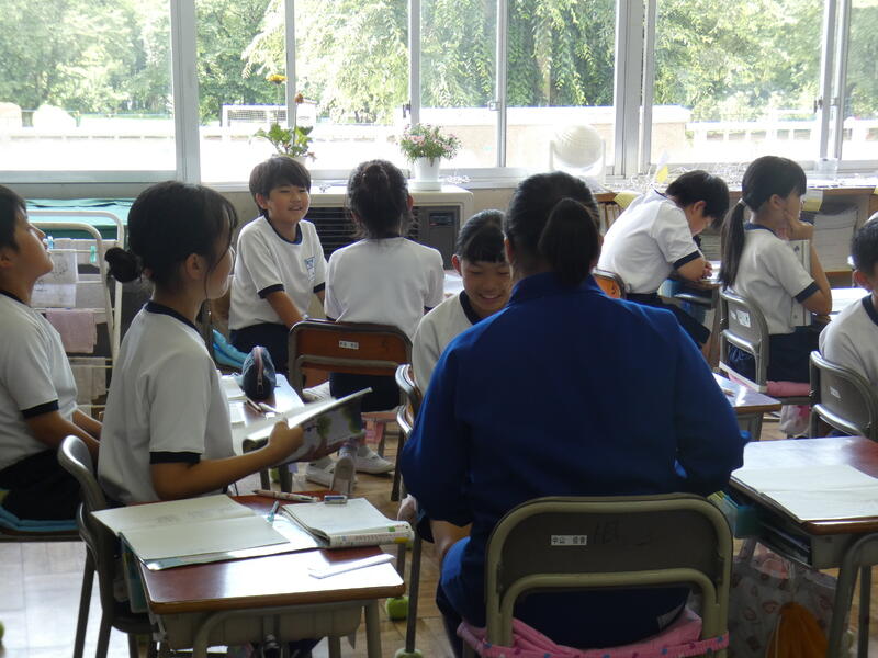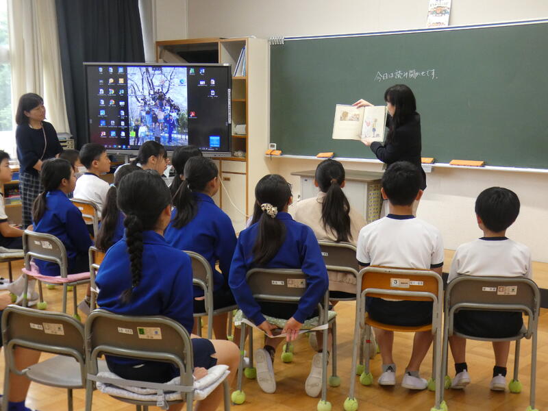 運動会で疲れた体を癒すように、子供たちはボランティアさんたちの読み聞かせにじっくりと耳を傾けていました。