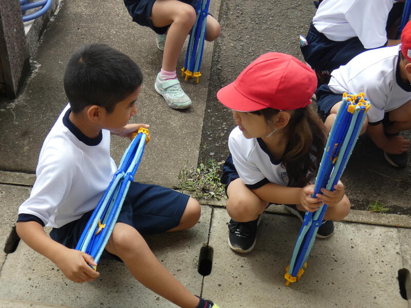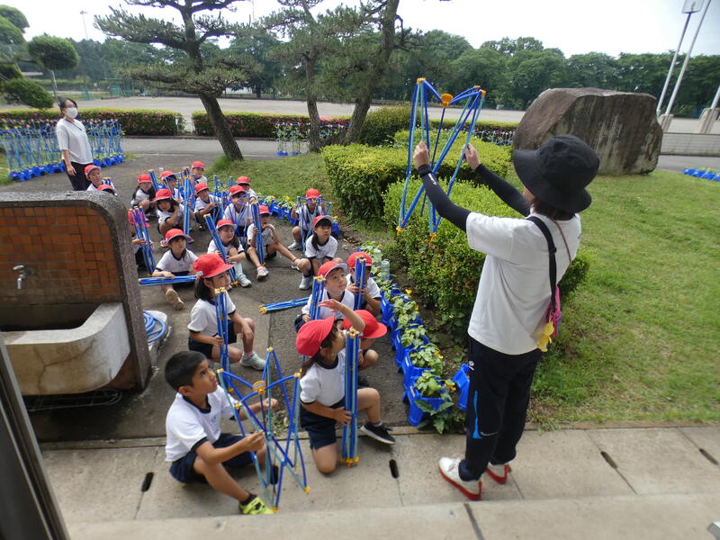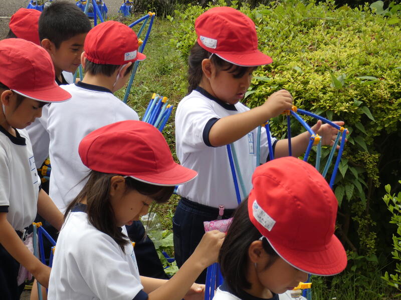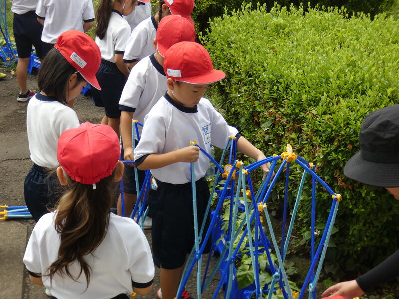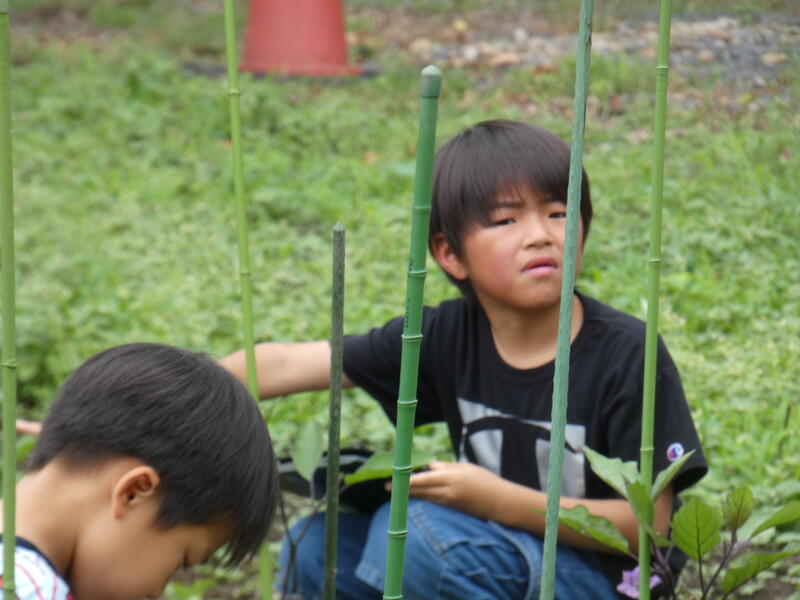 先生の話をよく聞いて、一人一人が慎重に支柱を立てていきます。