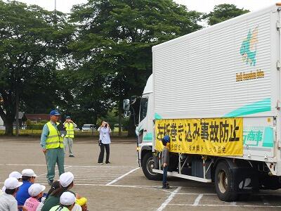 大きなトラックだと、左折時に巻き込まれてしまう可能性があること、トラックの運転席からでは見えない部分があることなど、様々なことを学ぶことができました。