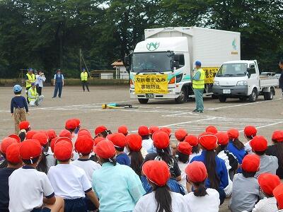 本日、長田交番の方、交通教育指導員さん、トラック協会の方々を招いて、交通安全教室が行われました。