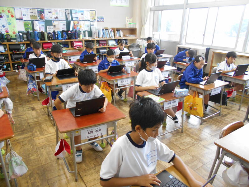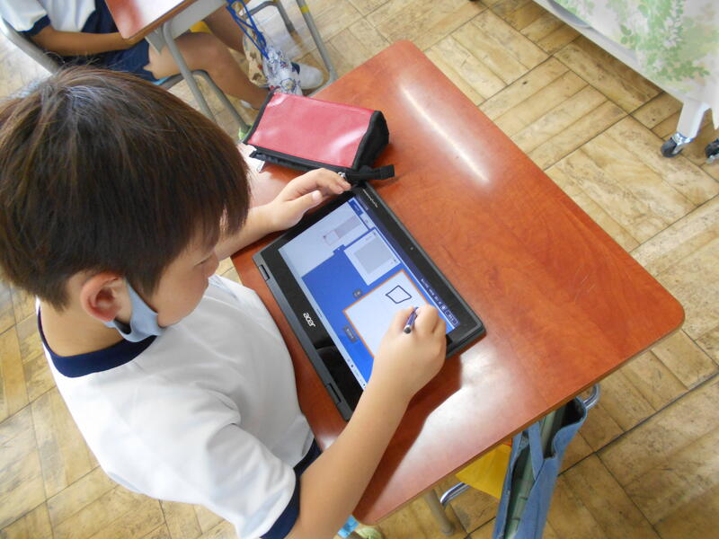 1年生と2年生がタブレットを使って、ICT機器の使い方の学習をしました。