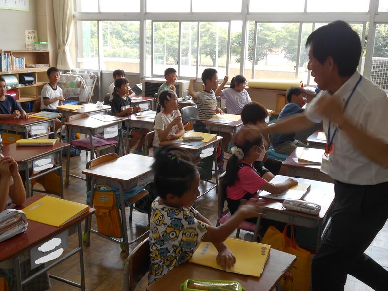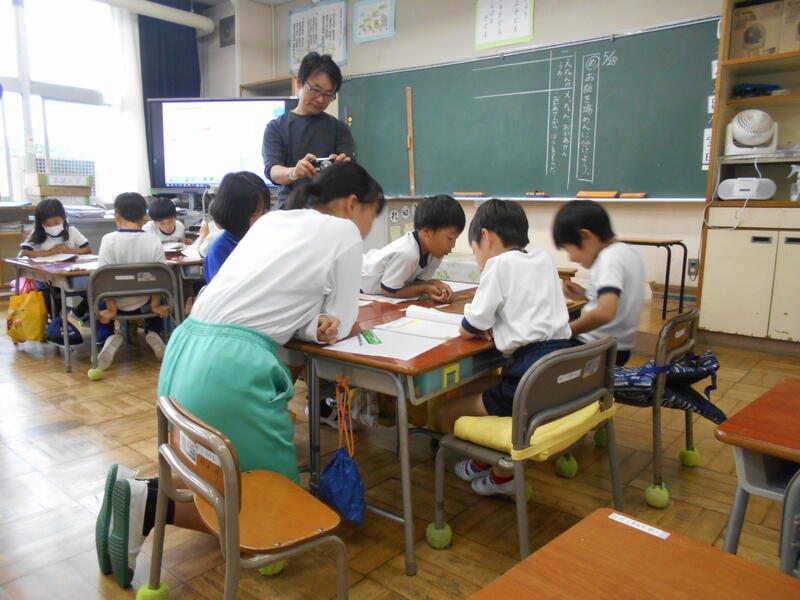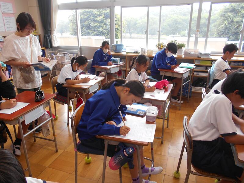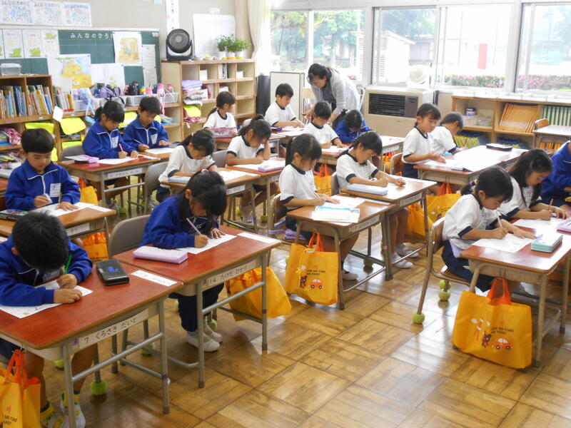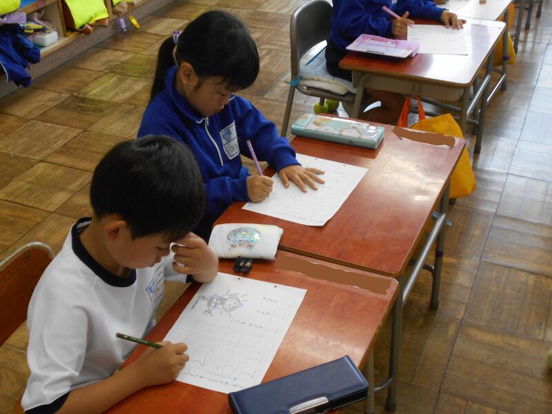1年生はひらがなを、4年生は漢字の練習をやりました。