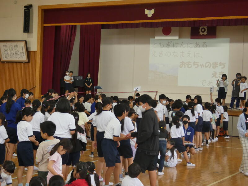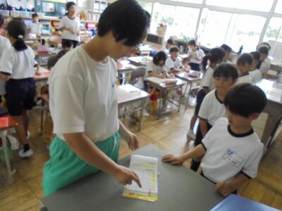子どもたちは、中学生のお兄さん、お姉さんに大喜び。