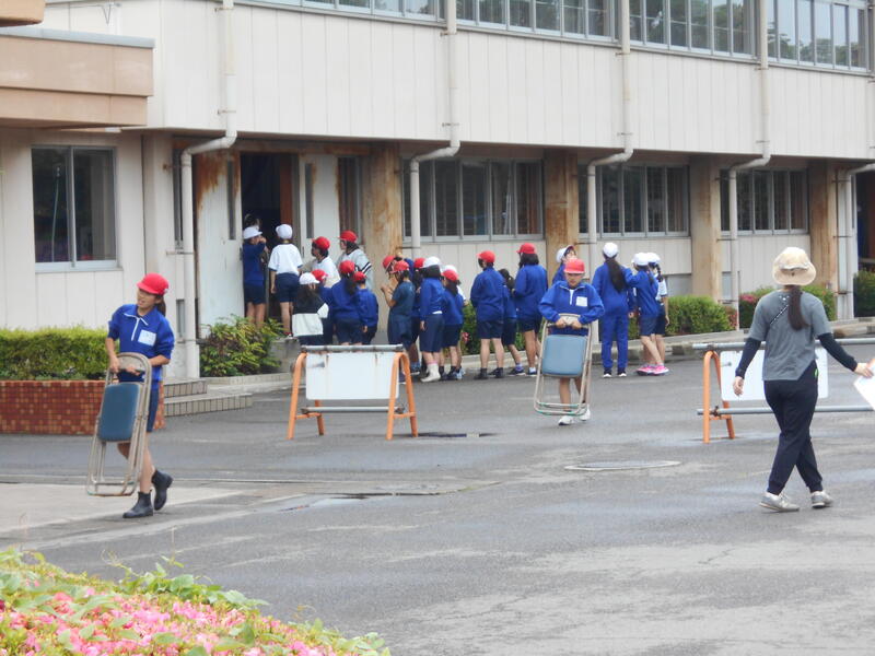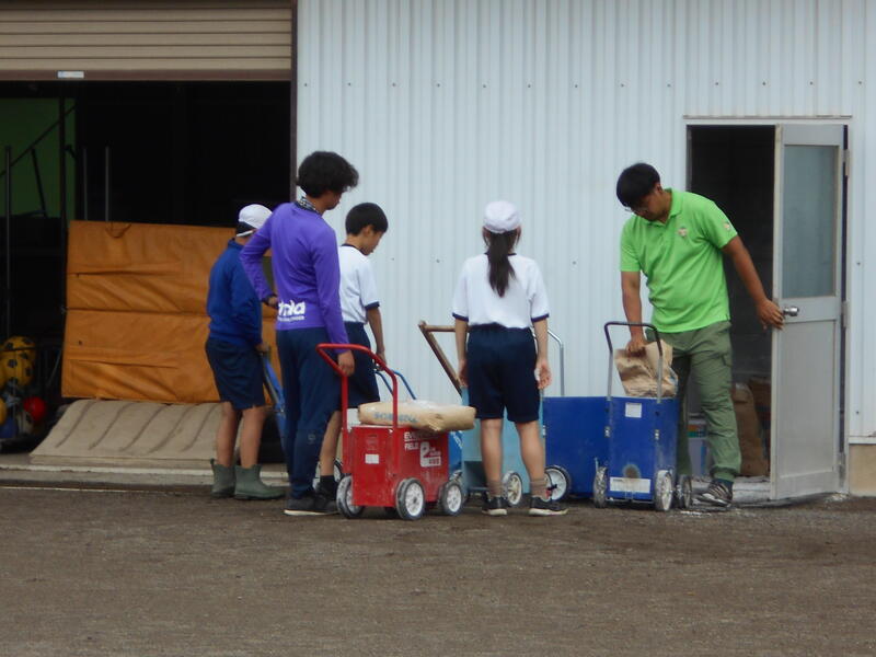 高学年の子どもたちによる、明日の運動会の準備が始まりました。