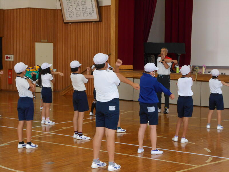 5年生の2~3時間目に、エキスパートティーチャーの飯島先生による体育の授業がありました。