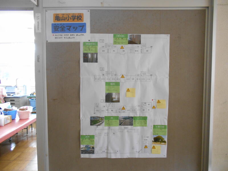 保健室の廊下側の壁面に「亀山小 安全マップ」が新たに掲示されました。