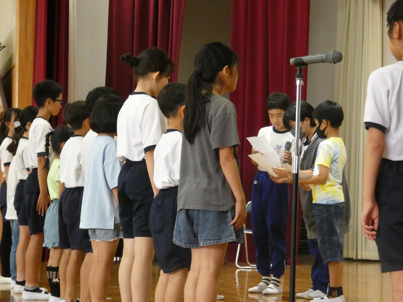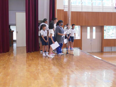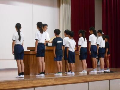 初めに、他分野で好成績を収めた児童の表彰を行い、次に校長先生の講話がありました。