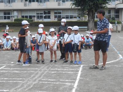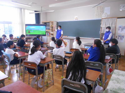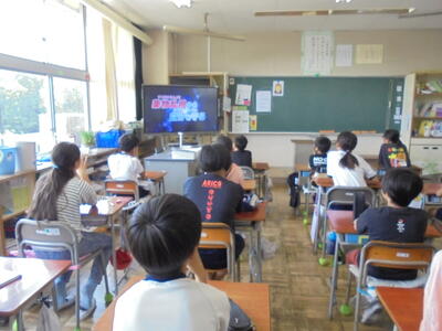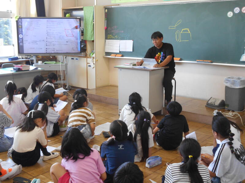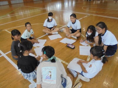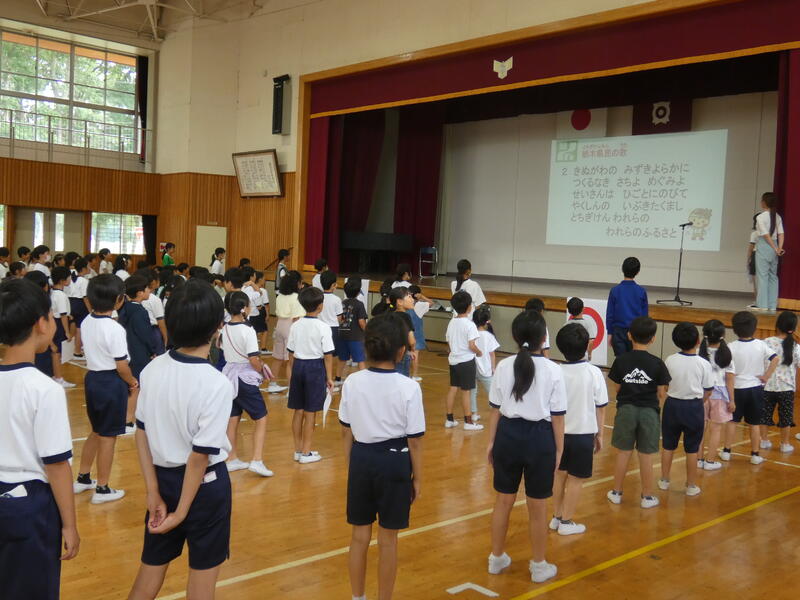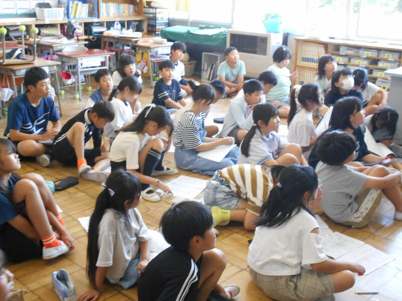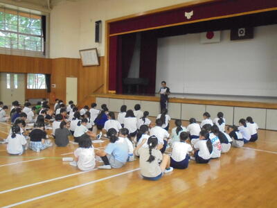 来週から始まる自然教室について、3・6年生合同で説明を聞きました。