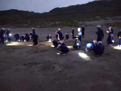 亀山小では3日間のプログラムのうち、1泊目は3年生と6年生が同じ部屋で寝泊りします。