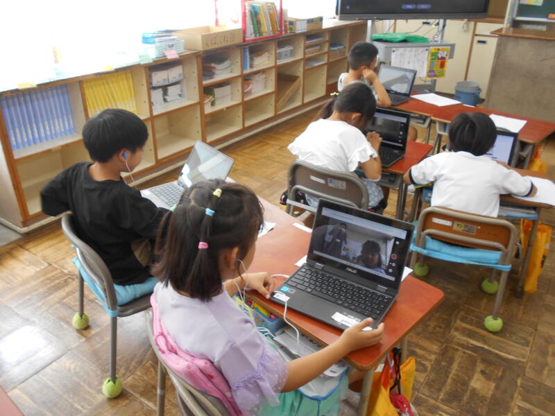 子どもたちは自分が音読している姿を確認し、次へのステップにむけてさらに改善しようとしていました。