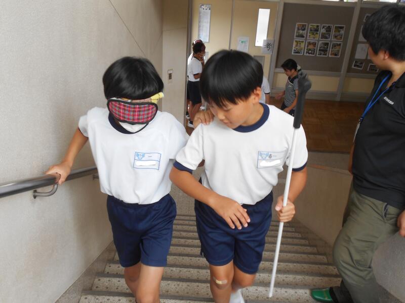 2時間目と3時間目は総合的な学習の時間で、アイマスク体験をしました。