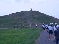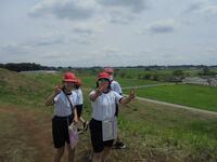 子どもたちは古墳のわきに並べられる埴輪に興味をもっていました。古墳付近では、土器や埴輪のかけらがよく見つかるのだそうです。子どもたちは「見つけたい!」と必死に探していました。
