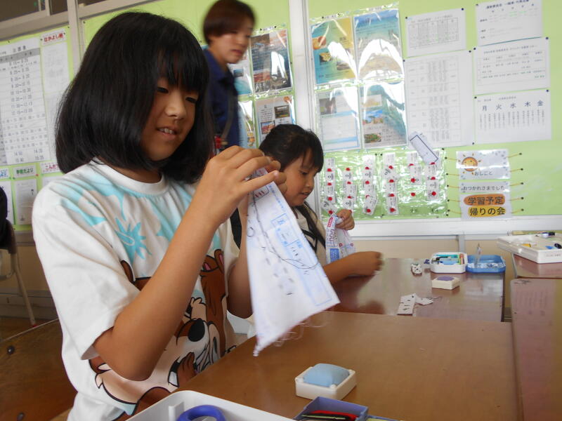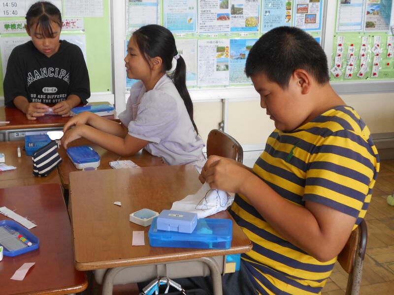 練習用の布を使って子どもたちは真剣に取り組んでいました。