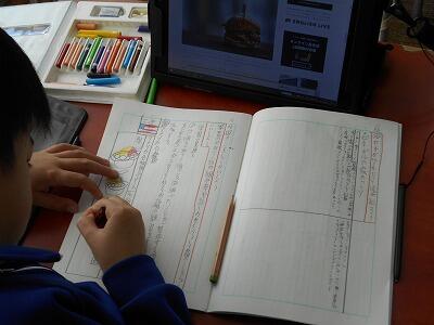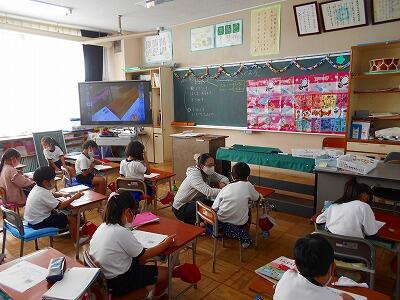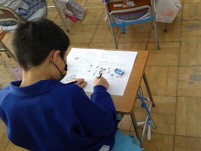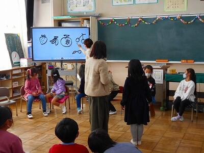 外国語活動の学習をしていました。外国語の授業も今年度最終になります。