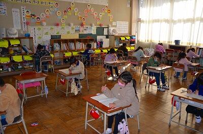 子どもたちは担任の先生のお話を聞いたり、友達と仲良く過ごしたりして落ち着いて過ごしていました。