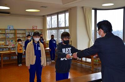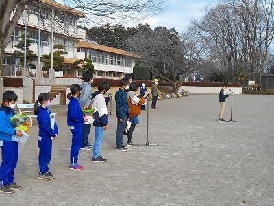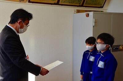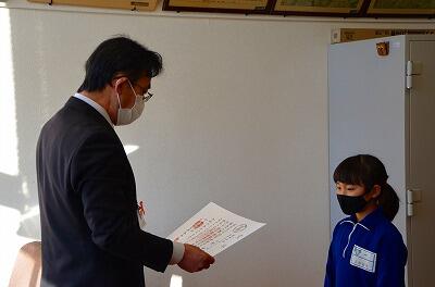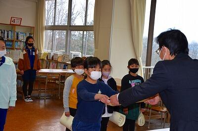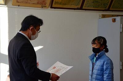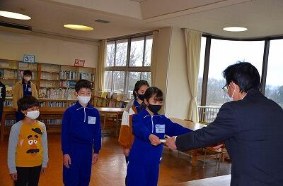 読書感想文や絵画など各種コンクールで入賞した児童が表彰されました。